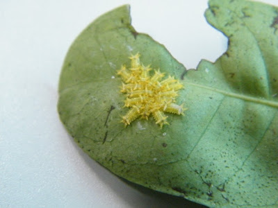 My staff showed me these clump or bunch of weird looking yellow caterpillars on 11 Dec 09. This time round, I dared not touched them and only glanced and took photos of them.