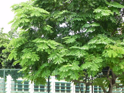 I seldom post about trees because for one, I find it difficult to capture nice photos of them against a green attractive background. But once in a while, I do like to share something about common or uncommon trees in our landscape despite the above issue.Anyway, I am posting about this Erythrophleum guineense (synonym: E. suaveolens) tree from the Fabaceae (Leguminosae) Family. This tree has been around for some time and they were planted not because of their flowers, but rather because of their healthy green appearance with tufts of green pinnate leaves that give an attractive layered feel. The new leaves appear orangey-yellow before rapidly turning green. In addition, they do not seem to have any pests and diseases problems, and hence were rather popular as shade providing trees in the past.