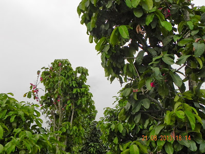 There are quite a number of Syzygium malaccense (Common Name: Malay Rose Apple, Jambu Merah; Family: Myrtaceae), which are slightly different from the Syzygium samarangense (Synonym: Eugenia javanica; Common Name: Jambu Ayer), planted in the garden.