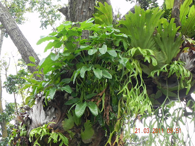 This Swietenia macrophylla is a Heritage Tree. Looking at the size and amount of epiphytes e.g. Epiprenum aureum, Vernonia elliptica, Bulbophyllum vaginatum, Platycerium coronarium, on its trunk, I wonder how long it has lived here. We were told that when the tree sheds its leaves, that is when complaints come pouring in. Why couldn't people just appreciate the tree for what it is truly is - our very own heritage? This is probably one of the last giants in our urban jungle. At this age, only bracing can help to keep it together.